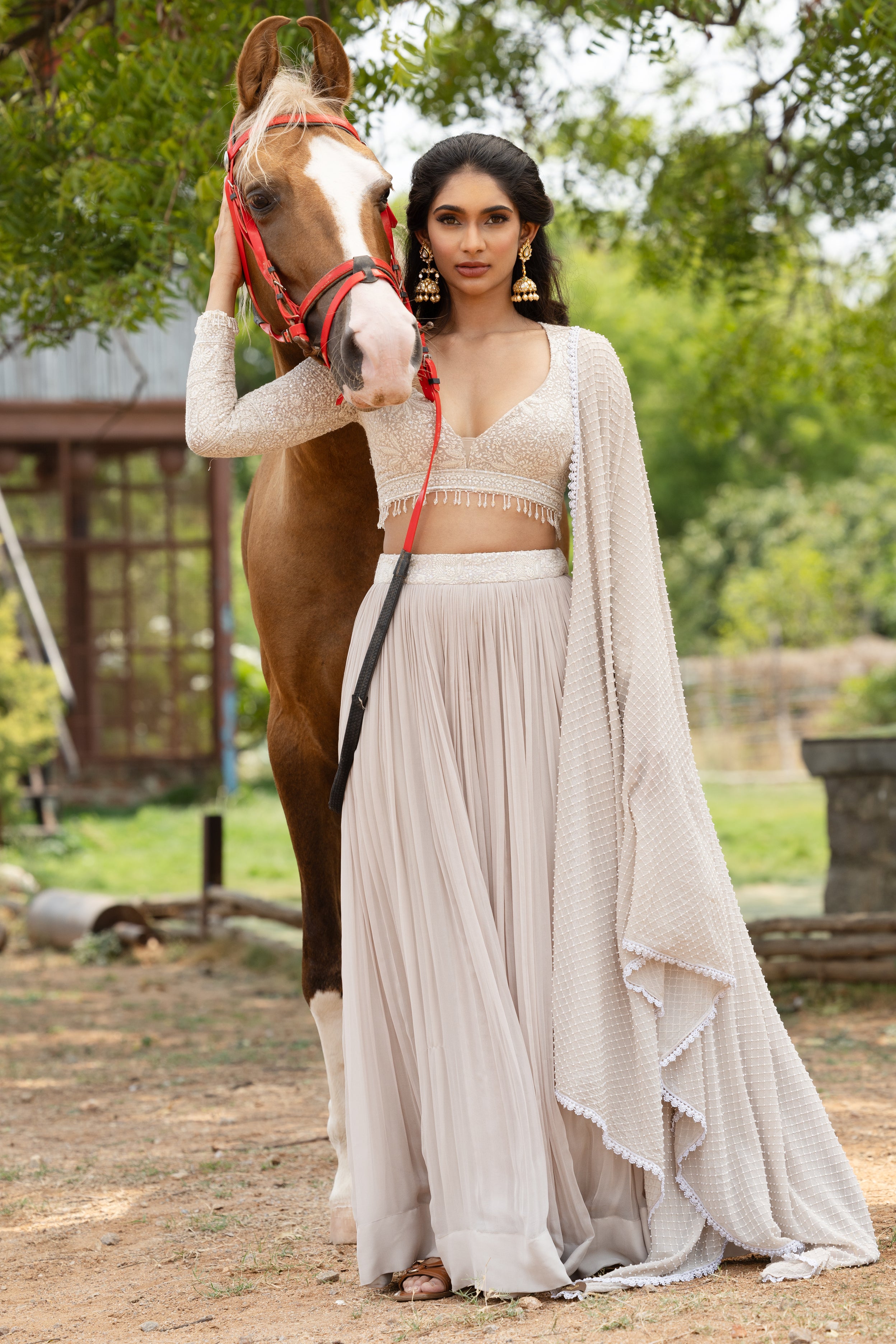 Chikankari heavy embroidered blouse with chikankari lehenga and dupatta