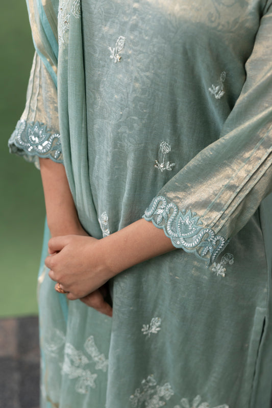 Seafoam Blue Embroidered Kurta Set with Dupatta
